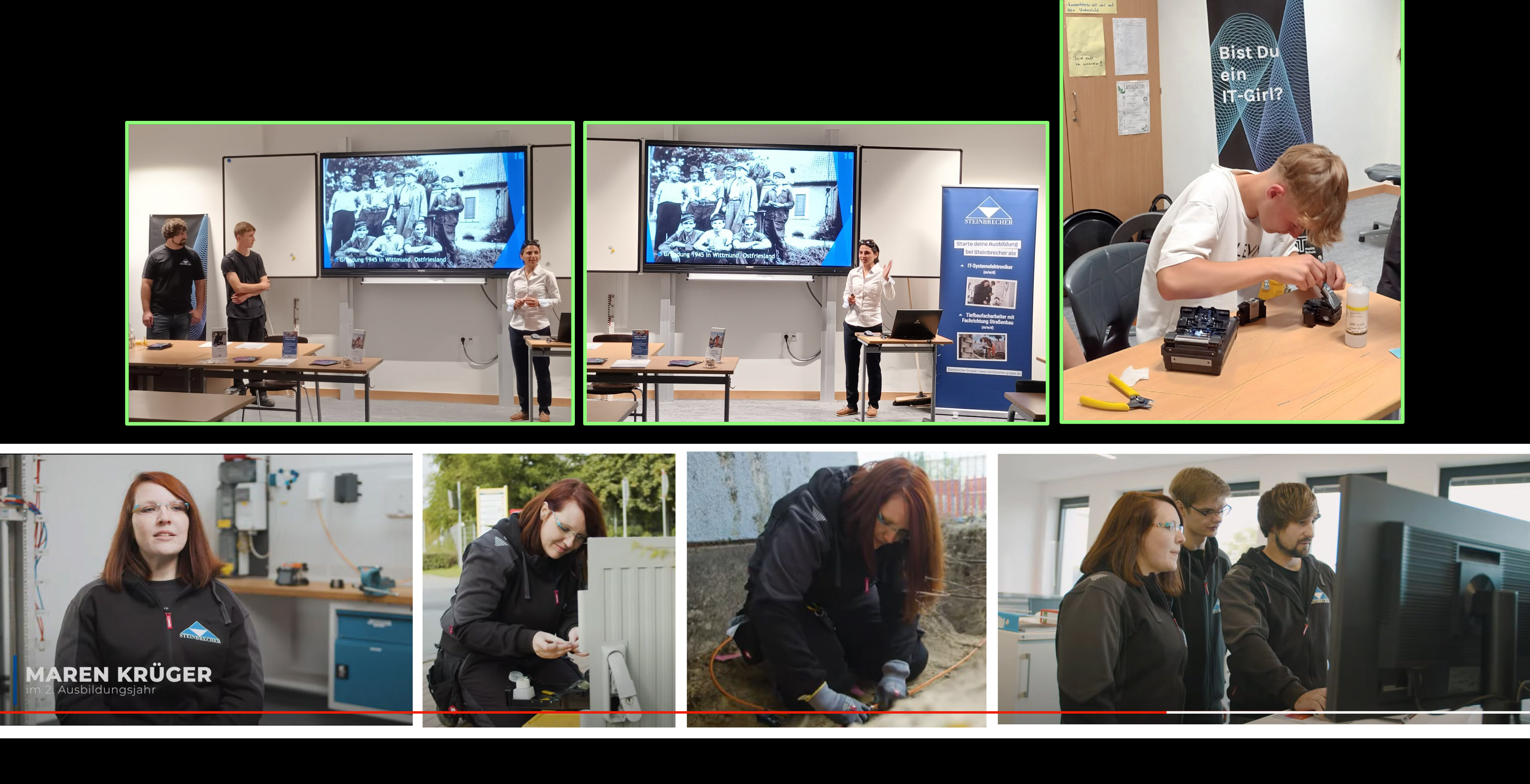 Zunächst informierte das Team von IT macht Schule über das ITmS-Praktikum, die IT-Branche, die verschiedenen IT-Berufe und die Möglichkeiten, darin ein Praktikum oder eine Ausbildung zu machen. Dann stellten die Büromanagement-Auszubildende Güler Coknez und Ausbilder Daniel Grittner von der Steinbrecher Gruppe das Unternehmen und die dortigen Ausbildungsberufe vor und sprachen über die beruflichen Möglichkeiten. Ein Video, in dem eine Auszubildende zur IT-Systemelektronikerin Einblicke in ihre beruflichen Tätigkeiten - u.a. auf Baustellen - gab, rundete die Präsentation ab. Es schloss sich eine Fragerunde an, in der Güler Coknez und Maksymilian Bartozewicz, Auszubildender zum IT-Systemelektroniker, aus ihrem Berufsalltag berichteten und den Schülerinnen und Schülern Rede und Antwort standen.